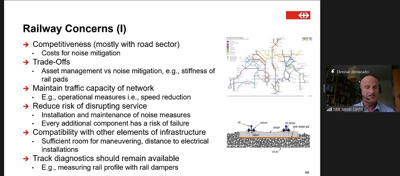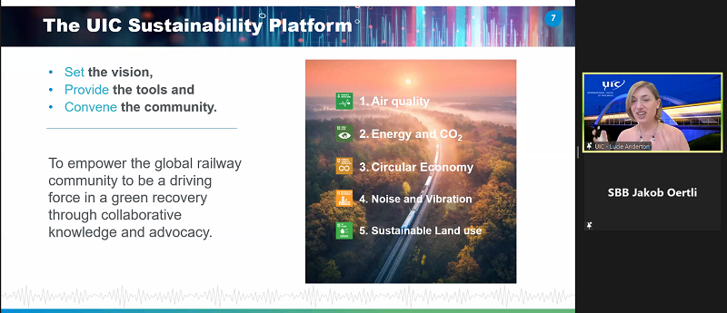 A collaboration between the UIC Sustainability and Rail System departments, the Railway Noise Days aimed to cover a wide range of activities and railway projects in areas of common concern such as noise regulations, control, management and abatement solutions. The agenda featured targeted presentations, with questions raised and ideas shared through the chat box and networking rooms. The webinar offered updates on the most important issues and developments in the railway noise domain, including European noise policy, ongoing projects and research and future developments.