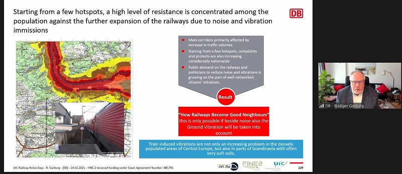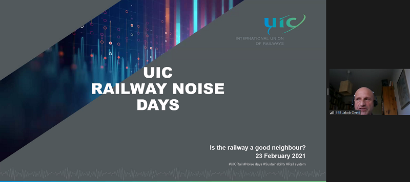The UIC Railway Noise Days event was held online on 23 and 24 February. With over 260 attendees, the virtual webinar was the first UIC-led event to celebrate the European Year of Rail and was attended by a global audience of government representatives, representatives of the European Commission and NGOs, railway operators and infrastructure managers, suppliers and noise researchers.