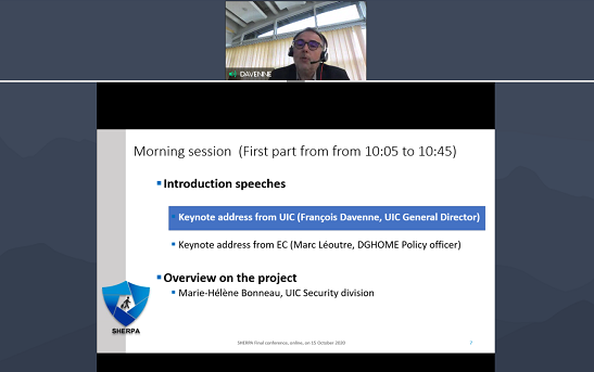 More than 90 participants from 21 countries across the world attended this online conference organised by UIC on 15 October to discuss the findings and main outputs of SHERPA (Shared and coherent European Railway Protection Approach).