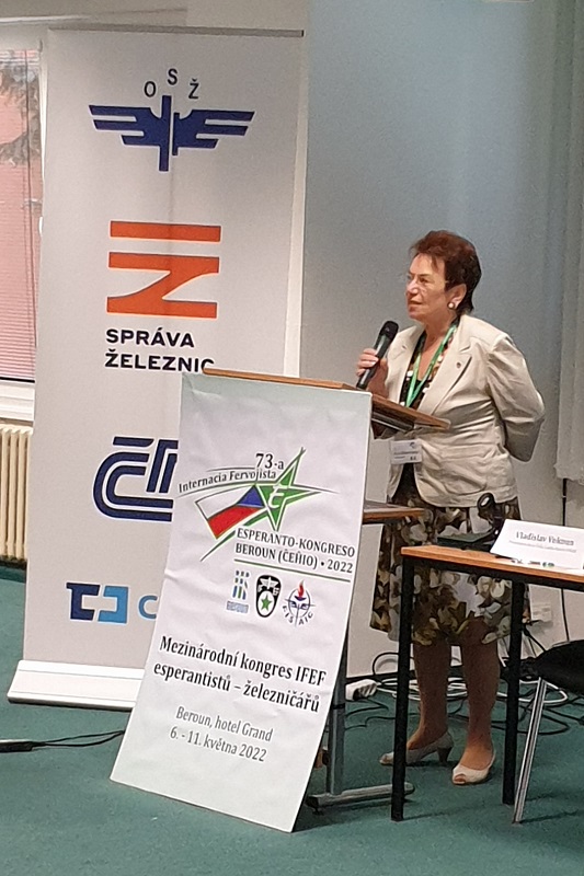 Rodica Todor (Romania), IFEF President, introduced IFEF and its role as an organisation of railway workers developing Esperanto as a railway professional language. She addressed the consequences of the Covid-19 pandemic and recent war.
