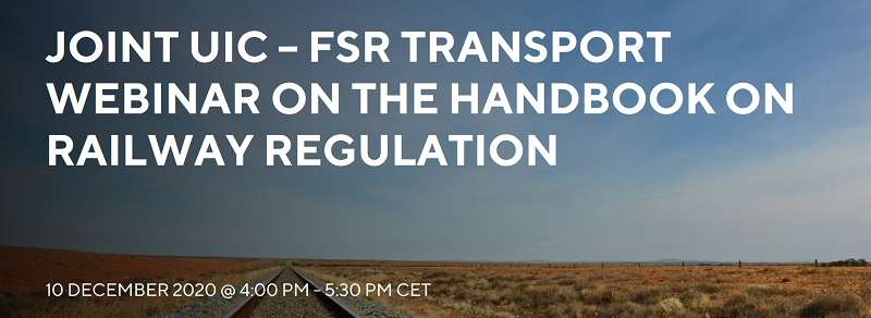 Joint webinar by UIC and FSR (Florence School of Regulation) Transport on the Handbook on Railway Regulation to be held on 10 December 2020