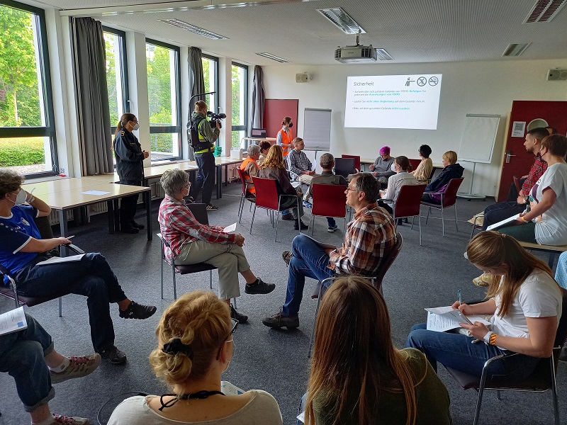 This exercise was based on a scenario of a chemical substance being released near a train station from a freight train, leading to a specialised operational response. The chemical leak was simulated using disco fog in order to increase realism. The exercise was run in German and focused on the decontamination phase of emergency response. FDDO involved 130 firefighters who trained their decontamination skills.