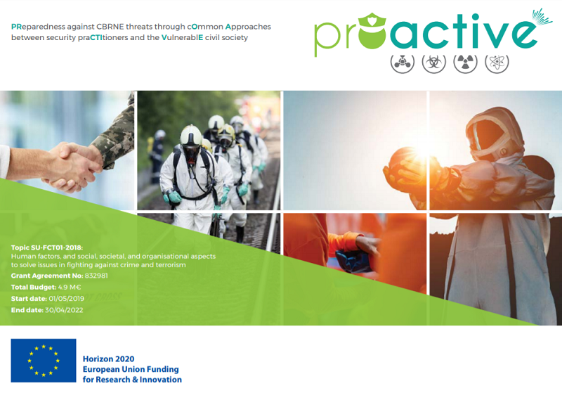 The PROACTIVE project (PReparedness against CBRNE threats through cOmmon Approaches between security praCTItioners and the VulnerablE civil society) has received funding from the European Union’s Horizon 2020 research and innovation programme under grant agreement No. 832981.