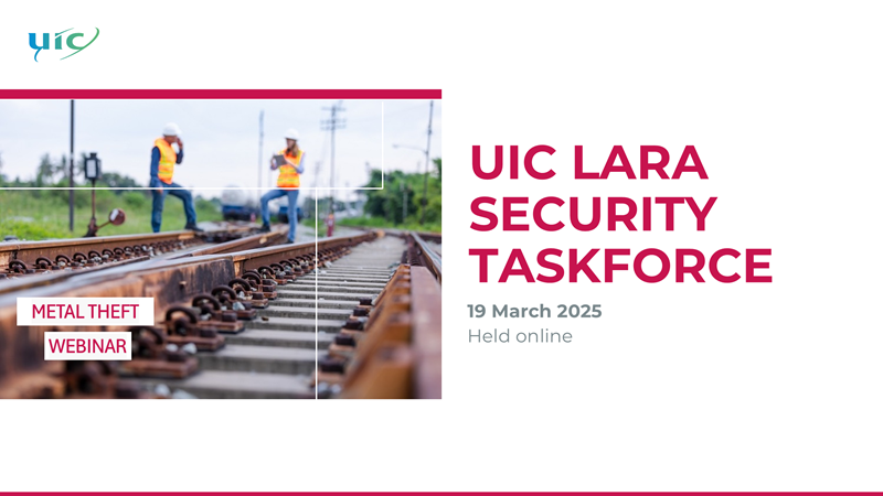 The UIC Latin American Regional Assembly (LARA) is pleased to invite railway security experts to participate in a Spanish-language webinar, with English interpretation, on: “Strategies to prevent metal theft and ensure railway security”, taking place online on Wednesday, 19 March 2025.