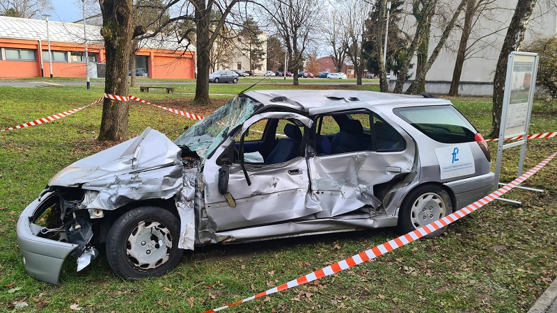 After the conference the car used in the crash test was shown to the participants, and will be permanently exhibited in front of the building, in order to remind all visitors to the Borongaj Campus of the consequences of risky driving and ignoring road traffic rules.