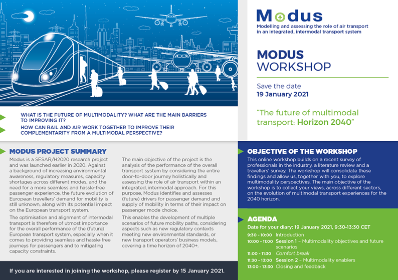 The first Modus workshop: The Future of Multimodal Transport: Horizon 2040 was held online on 19 January, attended by almost 90 experts, mainly from the air and rail sectors.