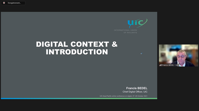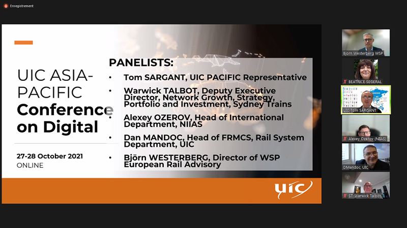 The UIC Asia-Pacific Region hosted its Conference on Digital on 27 and 28 October 2021. Once again UIC was able to pull together a programme of speakers spanning the globe to discuss the topic of digitalisation. The key sponsor for the conference was Sydney Trains, and thanks go to Mr Warwick Talbot for his support for the programme.