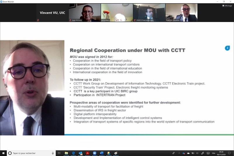 Transport multimodality for facilitation of freight, dissemination of IRSs in the freight sector, digital platform interoperability, and development and implementation of intelligent control systems were identified as prospective areas for further development of regional cooperation between UIC and CCTT.