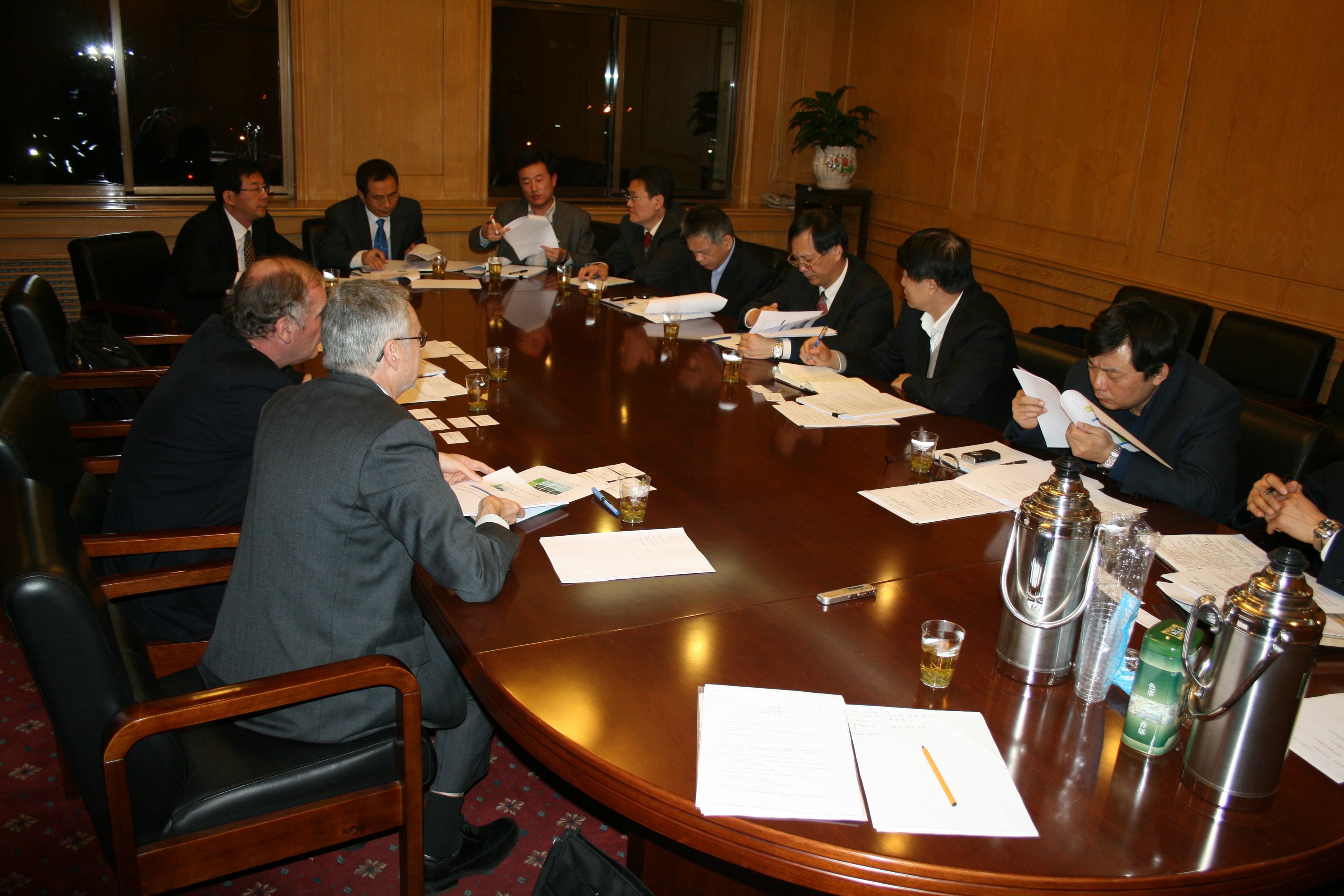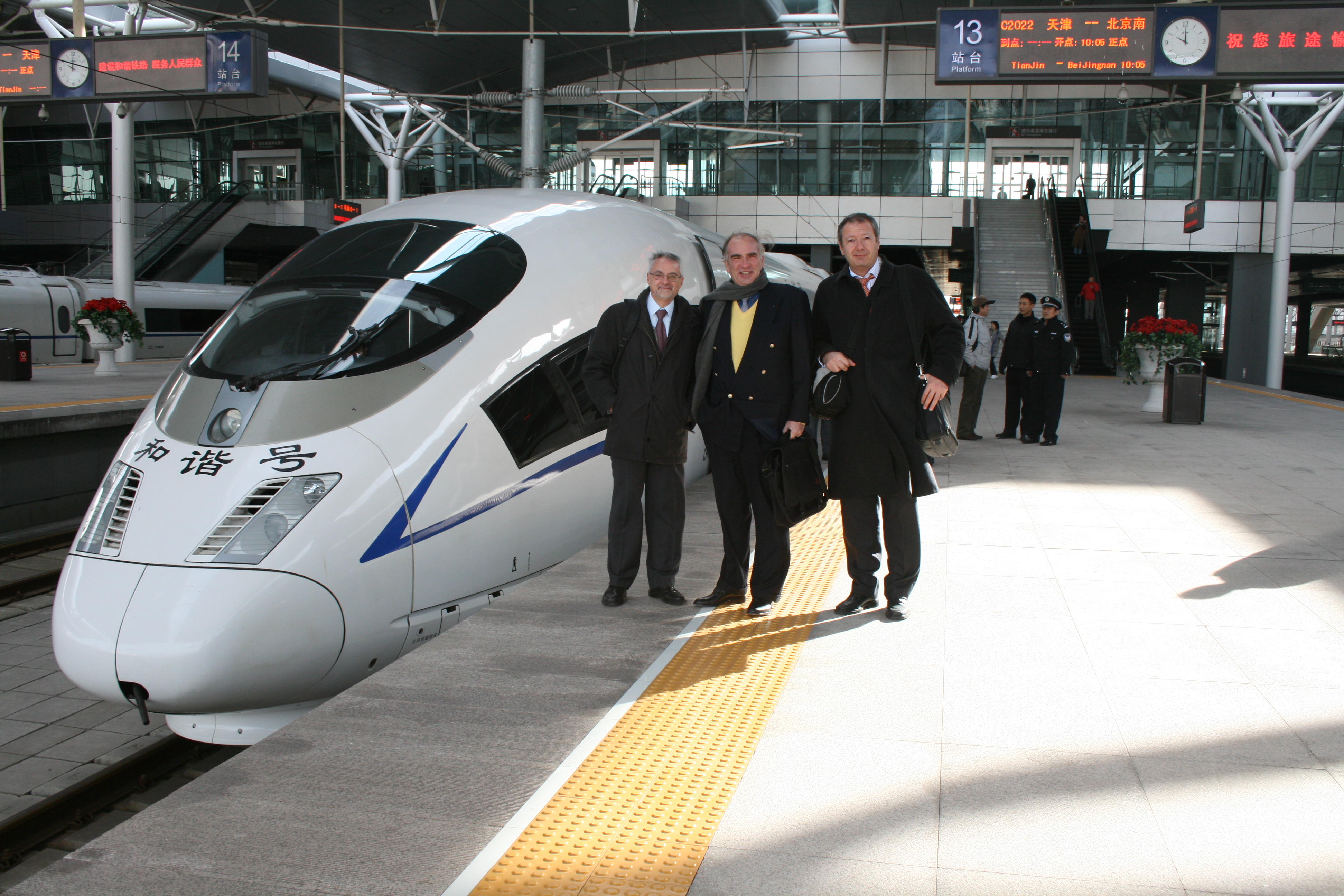 On the evening of Sunday 15 November, the first meeting of the Steering Committee for the World Congress on High Speed was held at the headquarters of the Chinese Ministry of Railways (MOR). The meeting was attended by the UIC Director General, Jean-Pierre Loubinoux, accompanied by Ignacio Barrón and Michel Leboeuf (Chairman of the High Speed Plenary Committee), who met the head of the Ministry and the Chinese Academy of Railway Sciences (CARS), which will be organizing the event.