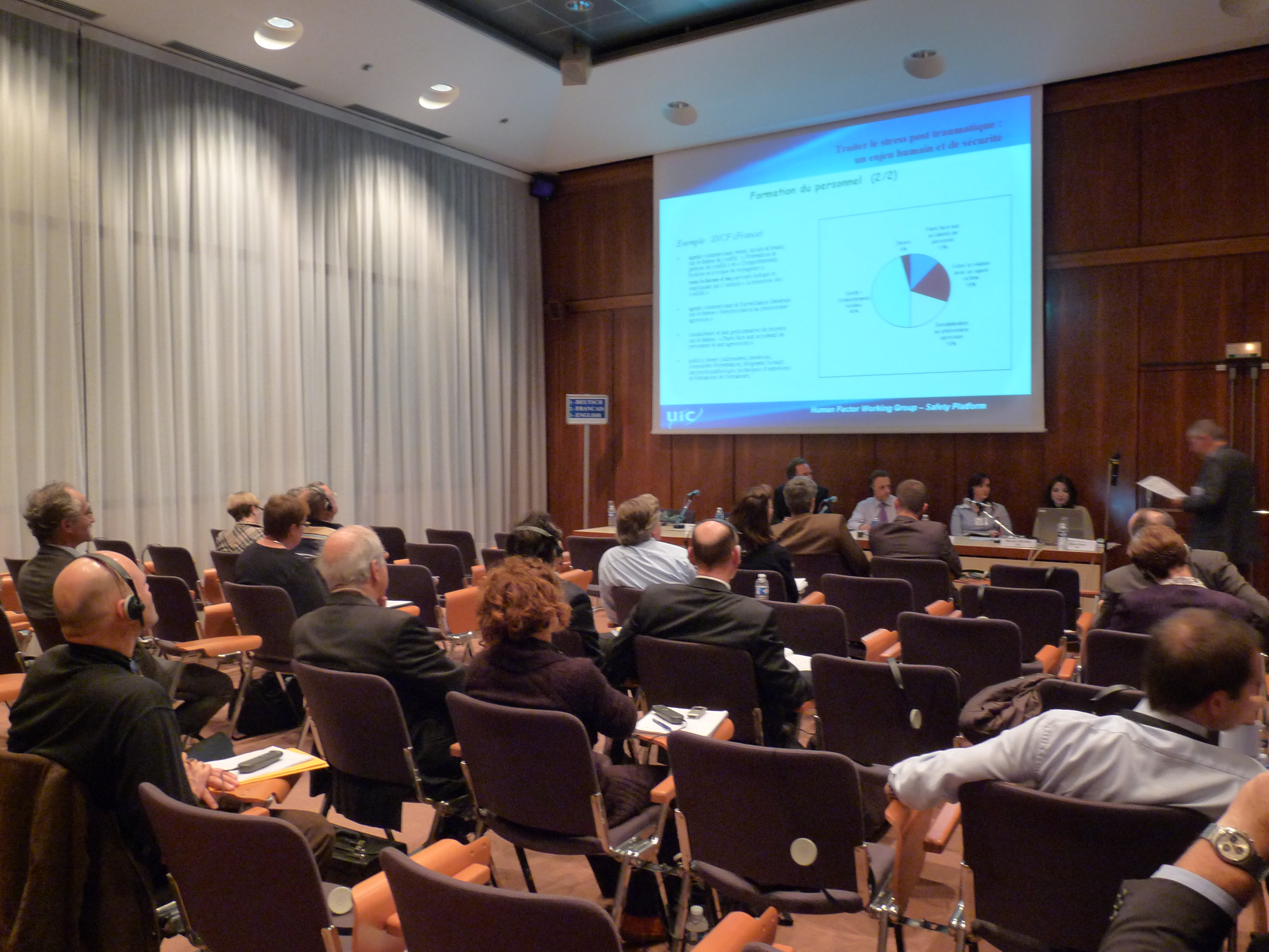 The workshop was concluded by a round table on the development of a UIC posttraumatic stress handbook. Virginie Papillault, ergonomist and human factors expert at UIC, in charge of the project, presented an outline of the contents and stated that a taskforce would be needed to carry out the work.