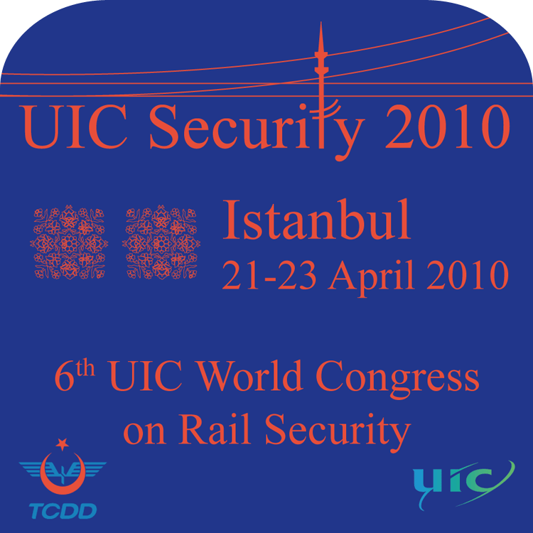 The 6th UIC World Security Congress 2010 will be held in Istanbul from Wednesday 21 April 2010 to Friday 23 April 2010 at the invitation of Turkish Railways (TCDD). It will address key issues in the field of rail security, which recent events have once again brought to the fore. It will also be the opportunity to set a course for 2010 and beyond in cooperation with the relevant professional and institutional partners.