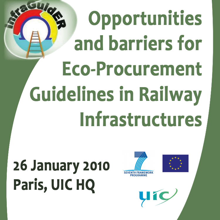 The EU project InfraGuidER aims at providing “Guidelines for the Environmental Specification of Railways Infrastructure”. This includes green procurement as well as better defining the research activities necessary to enhance the environmental performance and sustainability planning for Infrastructure Managers.