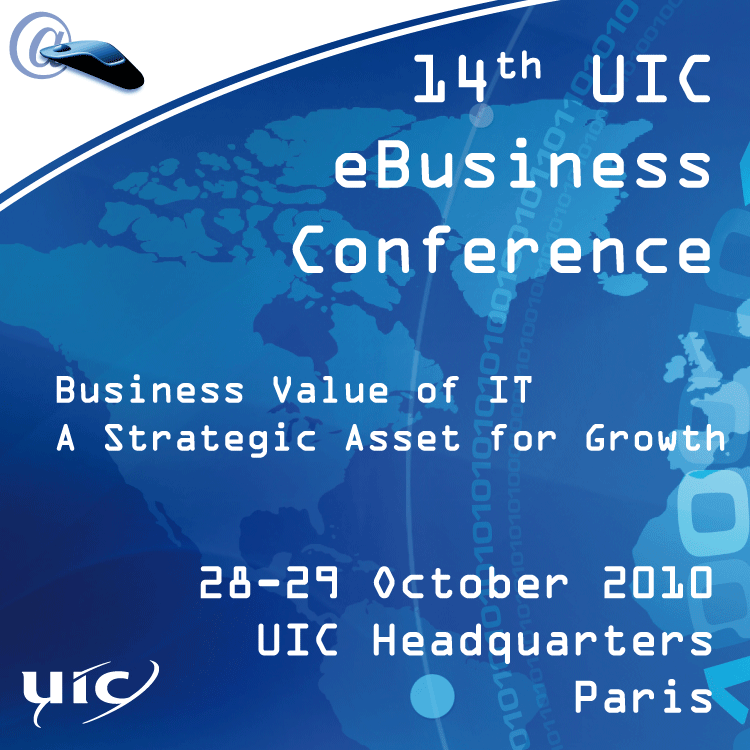 Time is quickly approaching for the to the 14th Annual UIC eBusiness Conference, that will take place in Paris, UIC HQ, 28-29 October 2010. The theme of this year’s Conference will be “Business Value of IT – A Strategic Asset for Growth” and will address a variety of subjects having a current impact on Railway IT development.