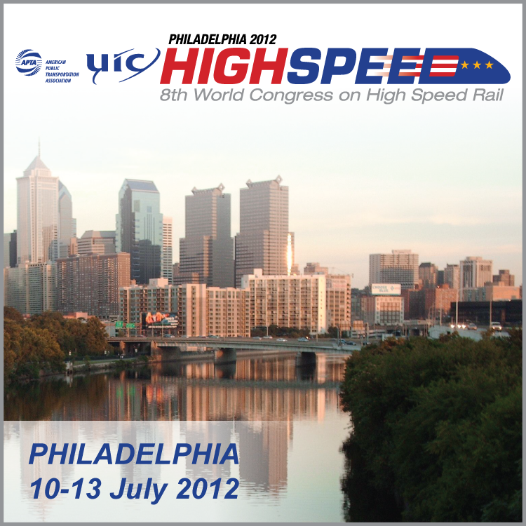 The 8th World Congress on High Speed Rail will be held in Philadelphia, PA, on 10-13 July 2012. The congress is being organised by UIC and APTA together with Amtrak, the Association or American Railroads (AAR), the Federal Railroad Administration of the US Department of Transportation (FRA) and VIA Rail Canada, all UIC North-American Members.