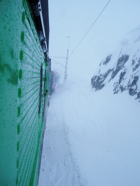 The following morning on 3 March the train started its operation in Sweden, completing its first trip from Malmö up north to Kiruna. After that it shuttled three times between Boden and Gävle before travelling to Borlänge for a weekend stay at the workshop for inspection. After returning to Kiruna on the morning of 12 March, the train then headed for Vassijaure on the Norwegian border. As the train left Krokvik (near Kiruna) there was bright sunshine, as and it went further north, the weather got worse and worse until a thunder snowstorm broke out just before it reached Vassijaure, causing high banks of snow. This created ideal test conditions for the train. During this run, some test brake actions were performed under various circumstances and the brake performance was always considerably higher than calculated, although the train was mainly braked with LL blocks (most of the brakes on the cast iron braked wagons had to be isolated due to high block wear).