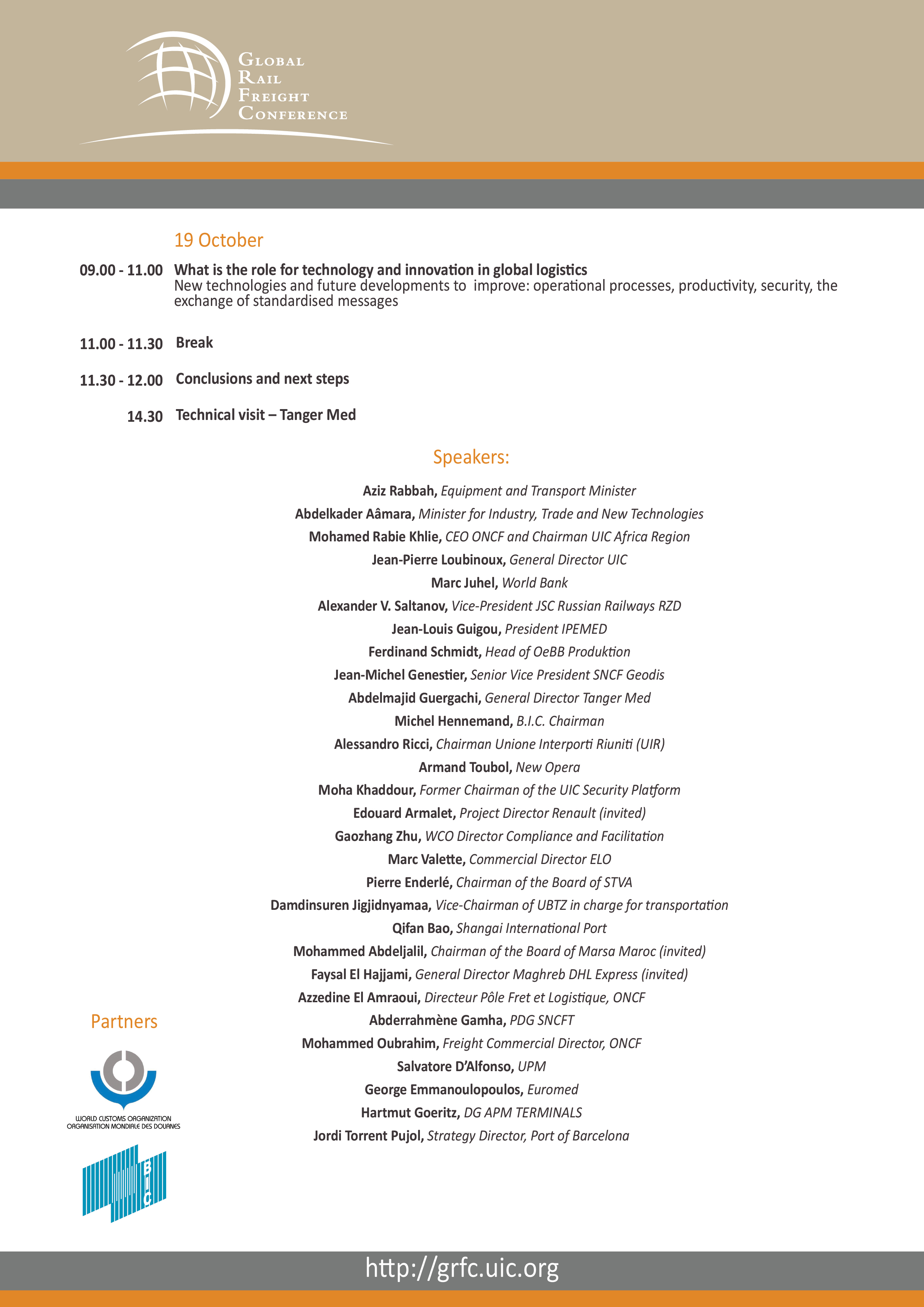 Please find below the updated programme of the 3rd UIC Global Rail Freight Conference (GRFC) to be held in Tangier from 17 – 19 October 2012.