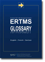 This glossary was initiated by the International Union of Railways (UIC) in order to meet a recurrent need faced by UIC members and by others working in the railway signalling sector. There is no escaping the fact that ERTMS as a system was designed and conceived in the English language. Many terms are thus unfamiliar and their meaning ill-understood in other languages. The UIC Control-Command, Signalling and Operations Sector therefore decided to compile a selection of the approximately 600 core English ERTMS terms which are used in the various formal or informal lexicons, and to define them with support from international experts specialising in ERTMS. This “dictionary” was then translated into French and German in order to meet a need for the precision and rigour which are vital in all matters pertaining to railway safety.