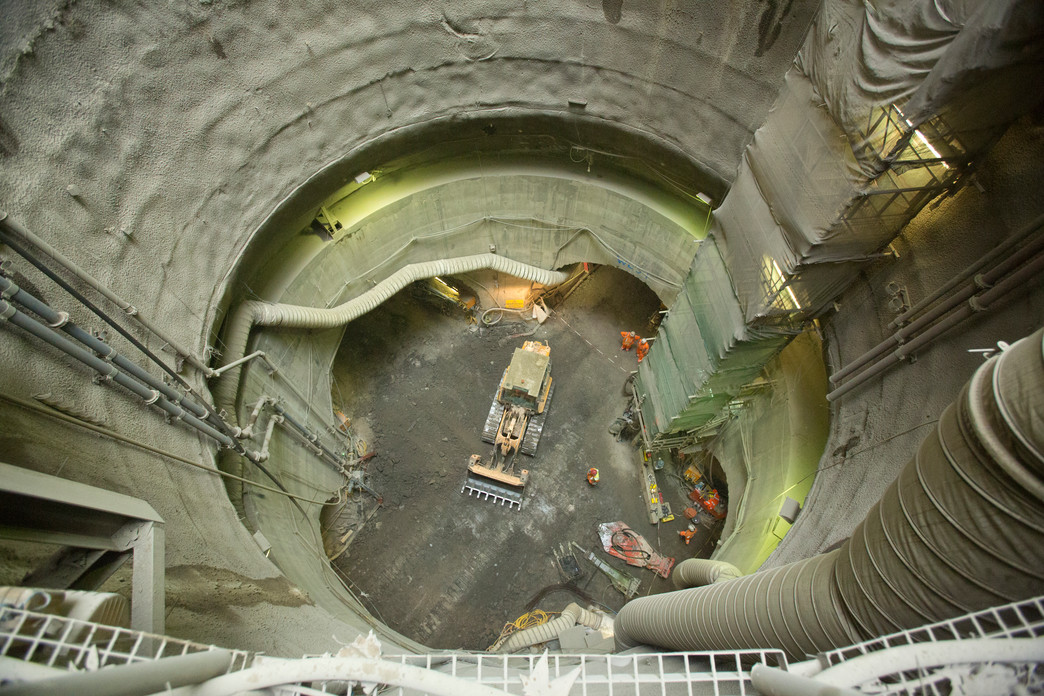 - From the bottom of the shaft, tunnels branching off in 4 directions are now being constructed to form the central passageways and cross passages at platform level