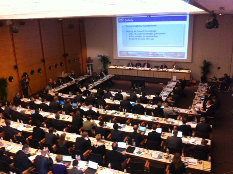 Mrs Molnar first described the strategic priorities of the United Nation’s actions and mentioned “the 58 international transport conventions (all relating to land transport) which all serve the United Nations’ three key goals of safe, clean and efficient transport”. Further priorities for the UN relate to Unification of Rail Transport Law (in close cooperation with OTIF, UIC, CIT, EU, OSJD), improving transport safety (with a strong focus on safety at level crossings where there is continuous interaction with UIC), the development of Euro-Asian Transport Linkages, the Trans-European Railway project (TER) and the development of a High-Speed Rail Network Master Plan, e-Networks...