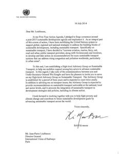 As previously published in UIC eNews 404, UIC is particularly proud to have been designated by the United Nations to participate in the High-Level Advisory Group for Sustainable Transport to represent the railway sector. This High-Level Advisory Group, newly set-up, will aim to advise Secretary-General Ban Ki-moon on transport policy.
