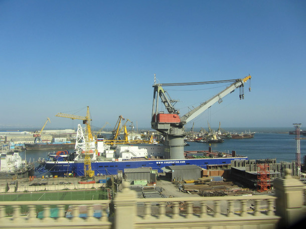 The visit to Baku’s future freight and ferry port currently under construction (first phase scheduled to be completed at the end of 2015) was an illustration of Azerbaijan’s plans to develop its activities in the areas of land transport and maritime transport (via the Caspian Sea).