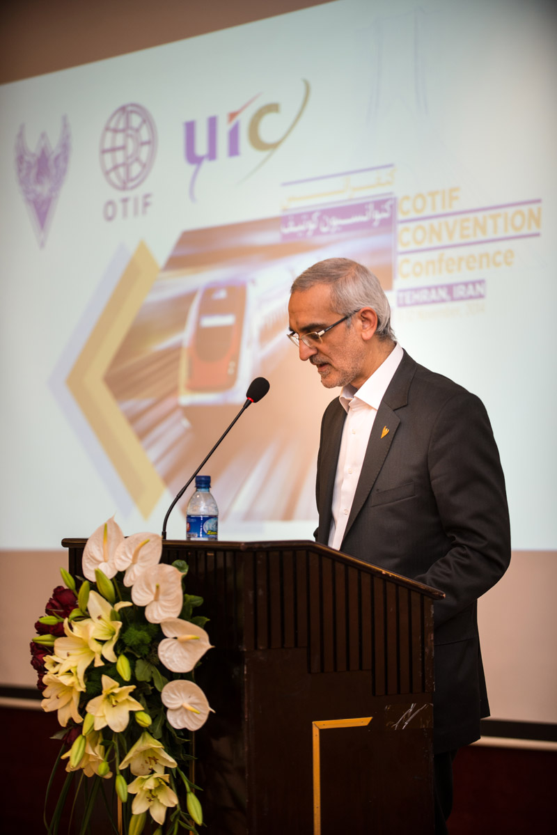 The conference was opened by Dr. Mohsen Pour Seyed Aghaei, Vice Minister for Roads and Urban Development, President of the Railways of the I.R. of Iran (RAI), Mr François Davenne, Secretary General of OTIF, Mr Jean-Pierre Loubinoux, Director General of UIC, and a representative of ECO.
