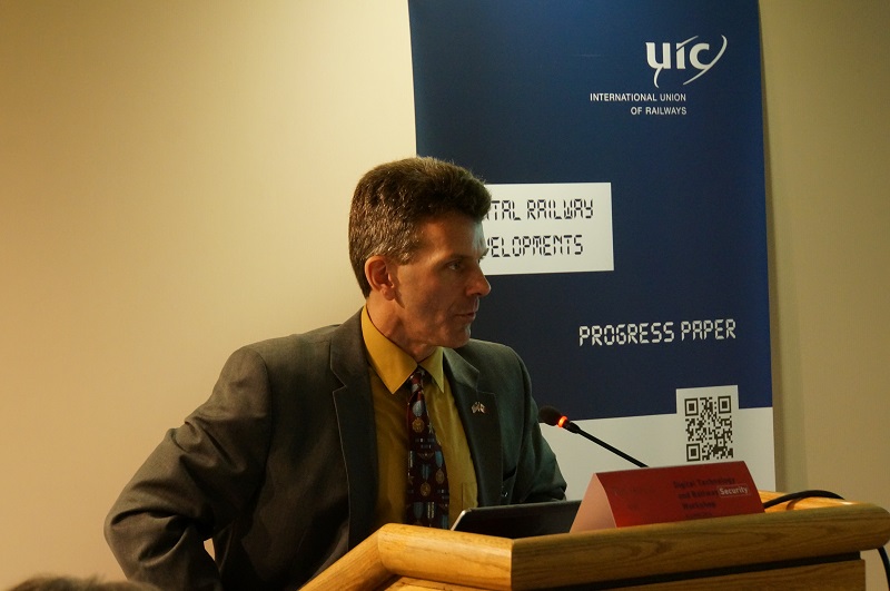 Concerning Threats and Constraints, the floor was given to Mr. Gerd Neubeck, Deutsche Bahn (Germany), Chairman of the Security Platform, Mr. Claudio Diotallevi, Railway Director, Ericsson, Mr. Randy Clarke, Assistant Vice President – Public Safety, Operations and Technical Services, American Association of Public Transport APTA and Mr. Ron Baklarz, Chief Information Security Officer, National Railroad Passenger Corporation Amtrak.