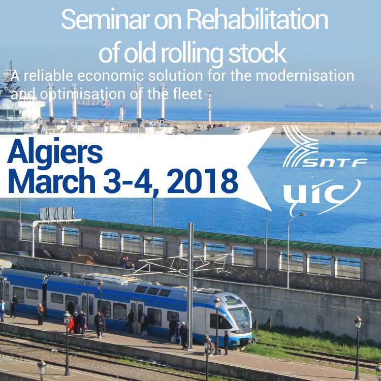 From 3 – 4 March, UIC will organise together with the Algerian National Railway Transport Company (SNTF), under the patronage of the Ministry of Public Works and Algerian Transport, a seminar on the subject of “Rehabilitation of old rolling stock: a reliable economic solution for modernisation and optimisation of the fleet”. The seminar is planned within the framework of the 34th session of the Maghreb Rail Transport Committee (CTFM) that will take place in Algiers (Algeria) from 28 February to 4 March 2018.