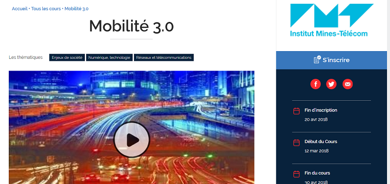 The French higher education institution Mines Telecom has just updated its Mobility 3.0 MOOC (Massive Open Online Course) dedicated to the different aspects of intelligent transport systems, featuring video interviews with heads of transport operators, manufacturers of autonomous shuttles, companies offering ticketing solutions, an account of the International Consumer Electronics Show in Las Vegas, on-board information systems and start-ups, etc.