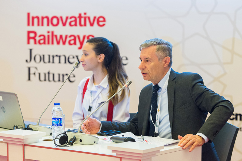 During this three-day congress, 25 parallel sessions took also place and gave the floor to 115 speakers which grouped together more or less one hundred people. Subjects addressed among others infrastructure planning, infrastructure earthworks, infrastructure bridges & viaducts, rail system signalling, station design & architecture & performance, train design and purchasing strategy, commercial competition & traffic forecasts, electric power supply, operation maintenance, socio-economy service quality, RAMS and cybersecurity (session moderated by UIC Head of Security Division Jacques Colliard, who emphasised the importance of managing carefully the huge amount of data), energy and environment (session moderated by UIC Director of Fundamental Values Jerzy Wisniewski, who emphasised that UIC Members work together to make railway the backbone of sustainable transport and to develop rail transport to meet the needs of sustainable mobility), as well as Asset Management & LCC, maintenance renewal, standards & regulations, station construction & management & connections (session moderated by the Director of the UIC Passenger Department Marc Guigon), or territory management.