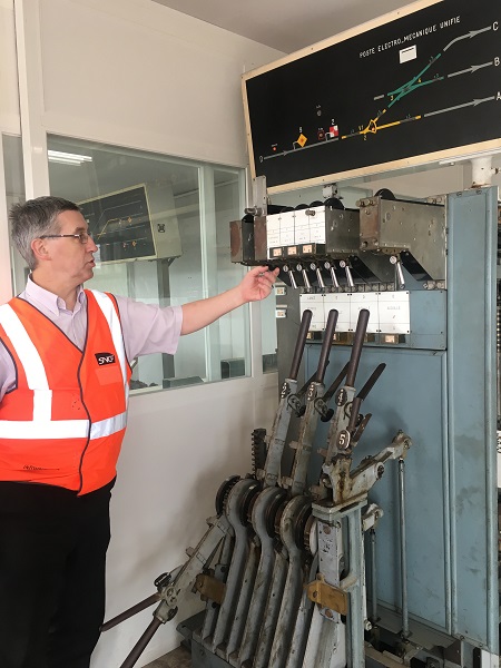 The group, before “pulling the levers”, visited a signal box as there are only a hundred left in France. Marc Antoni explained that “the older generation left us a standardised network”. The post, with lock switches, makes it possible to understand that it is absolutely necessary to have safety conditions to act, and all this is based on mechanical (bouré keys or mechanical interlockings) and electrical protections. Maintenance is done to make it work safely. Operating rules allow degraded management. They are not the same everywhere. Marc Antoni noted that “the principles are unchangeable even if the technologies change.”